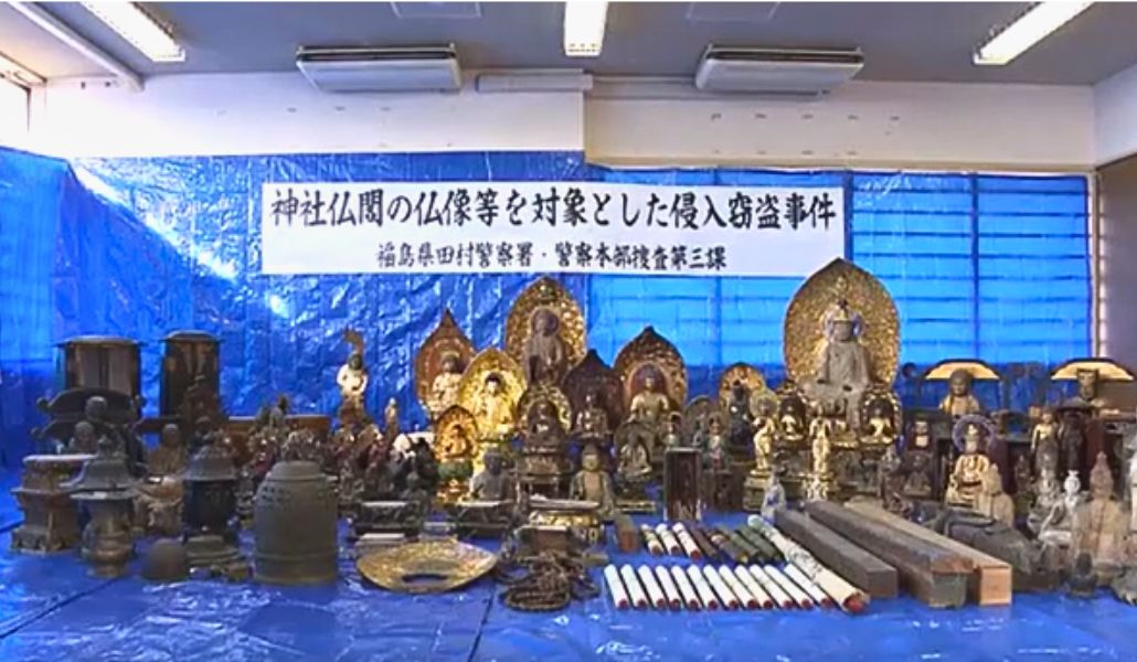 La Policía de Fukushima, reveló hoy, 14 de enero, la detención de un hombre de 48 años, acusado de robar aproximadamente 120 objetos, incluyendo estatuas budistas, de varios templos en la prefectura de Fukushima. Los objetos robados, según las investigaciones, fueron puestos a la venta en sitios de subastas online.