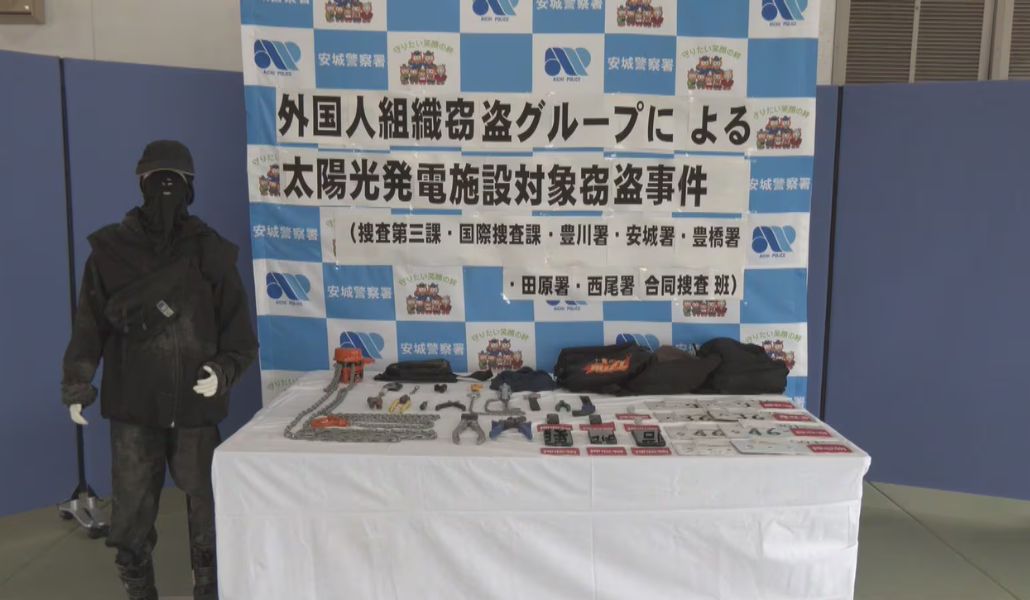 La policía de Aichi ha detenido hoy a seis hombres de nacionalidad camboyana y vietnamita, sospechosos de robar unas 13 toneladas de cables eléctricos de cobre en una planta de energía solar en Tokoname.