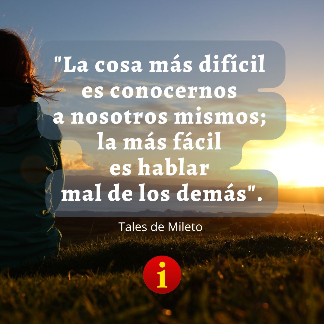 «La cosa más difícil es conocernos a nosotros mismos; la más fácil es hablar mal de los demás. Por Tales de Mileto».