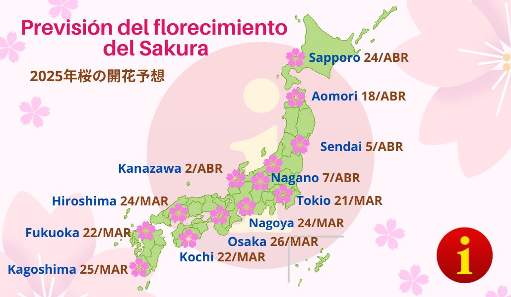 El inicio de la floración está previsto para el 21 de marzo en Tokio. Un día después, el 22 de marzo, Fukuoka, Kochi y Yokohama registrarán sus primeras flores. En los últimos días de marzo, el fenómeno se extenderá a diversas ciudades de Japón, alcanzando su punto máximo en el oeste y este del país durante la primera semana de abril.