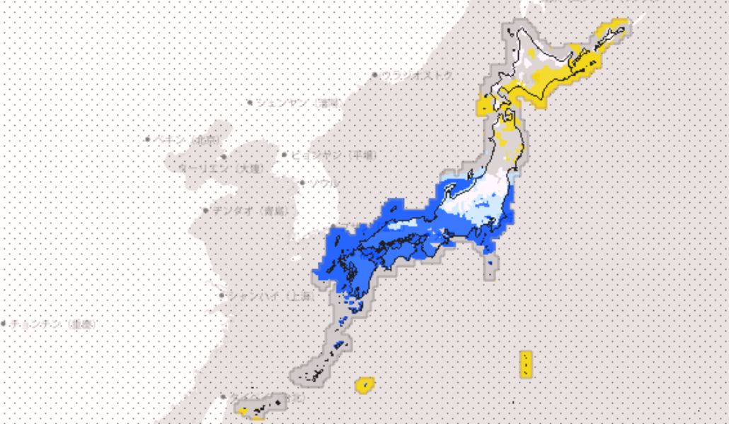 Además, el paso de un frente frío provocará lluvias y nevadas en amplias zonas del país. En el este y el norte, se esperan precipitaciones que podrían convertirse en nieve en áreas de mayor altitud. En las regiones montañosas de Kanto y Chubu, las nevadas podrían acumularse rápidamente, aumentando el riesgo de interrupciones en el tráfico y otros servicios.