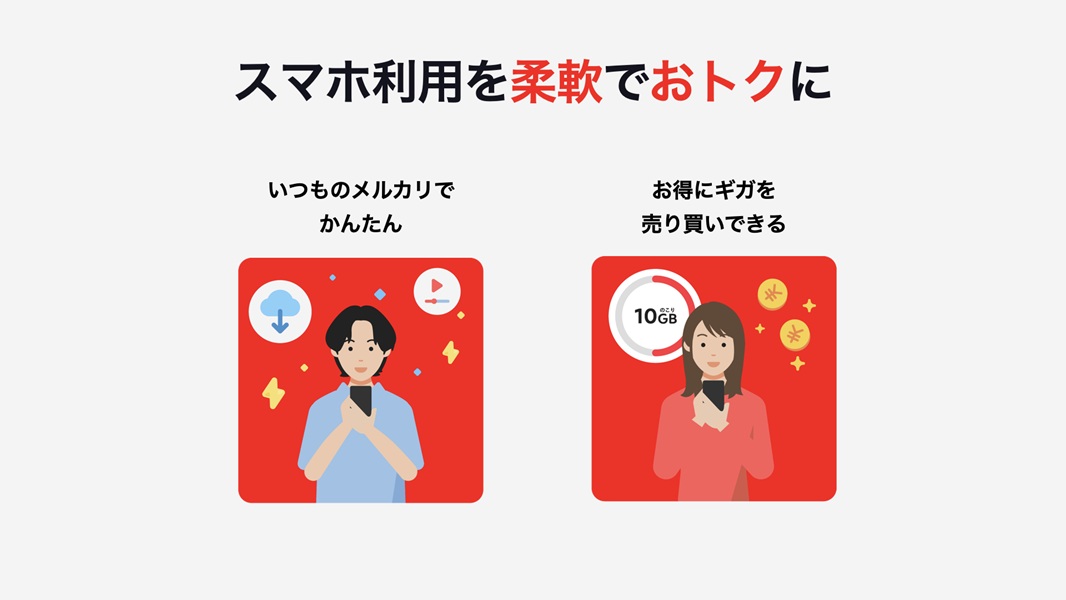 El aspecto más innovador de Mercari Mobile es su sistema de compra y venta de datos móviles no utilizados entre los usuarios. Similar a la compraventa de productos en la plataforma Mercari, los usuarios pueden vender los gigabytes de datos que no han consumido y adquirir aquellos que necesiten. El precio para la venta de 1 GB de datos comienza en 200 yenes, con un límite de 500 yenes por GB. Los fondos obtenidos por la venta se ingresan en el saldo de Mercari, lo que permite utilizar dicho crédito para compras en la plataforma o realizar pagos a través de Mercari Pay.