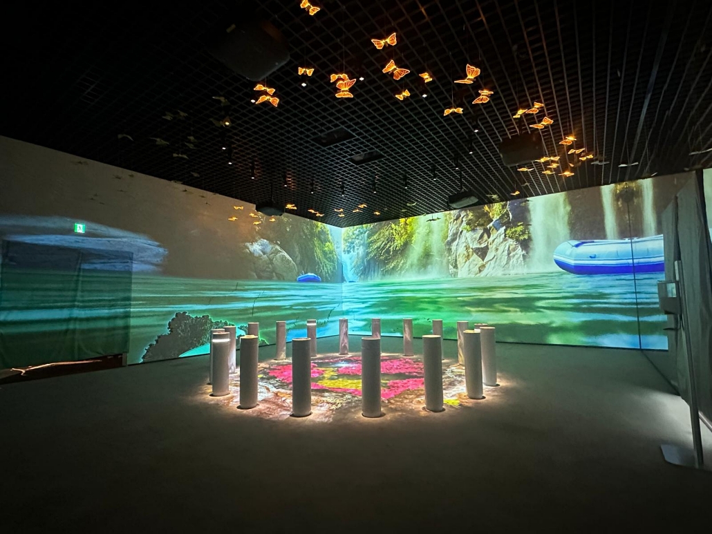 El pabellón colombiano, con un área de 875 metros cuadrados, propone un viaje guiado por el agua —símbolo de la vida— a través de paisajes inspirados en los Andes nevados, la selva amazónica, la región caribeña y el universo mágico de Cien años de soledad. La narrativa combina realismo mágico, biodiversidad y sostenibilidad, culminando en una instalación inmersiva que celebra las flores como símbolo de identidad nacional.