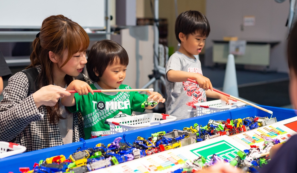 Los juegos no se quedan atrás. En “Tomica Tsuri”, por 600 yenes, los niños usarán cañas de pescar para atrapar su vehículo favorito. En “Sube y baja, entra al depósito”, deberán maniobrar un tren de Plarail hasta estacionarlo con precisión.