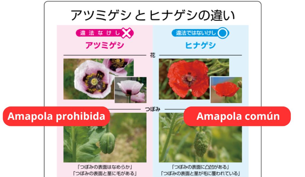Para facilitar su identificación, el Ministerio ha publicado en su sitio web una guía con imágenes comparativas entre amapolas ilegales y las comúnes. La «atsumigeshi» suele presentar flores de tonos lilas o púrpura claro. (International Press)