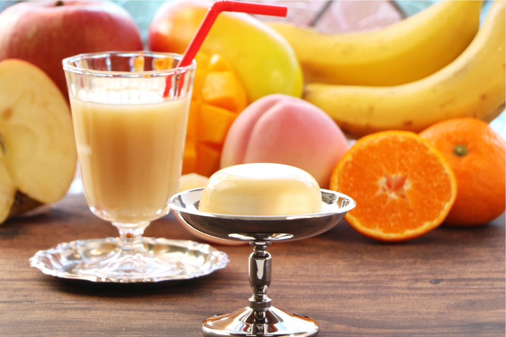 Inspirado en una bebida popular de los cafés de la región, este postre combina leche con jugos de frutas como melocotón de Arakawa (Wakayama), mandarina de Ehime, manzana de Nagano y puré de mango de Miyazaki. El resultado es un sabor espeso, afrutado y equilibrado entre dulzura y acidez, con una textura que se deshace en la boca.