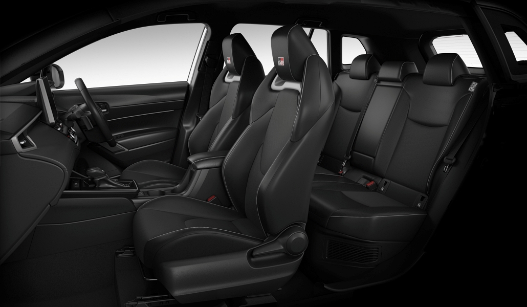 El interior también está pensado para el disfrute del conductor. Los asientos deportivos con logo GR están revestidos en cuero sintético y material antideslizante tipo gamuza, ofreciendo soporte lateral en curvas. El volante de tres radios, los pedales de aluminio, las levas al volante y los acabados metálicos fuman realzan su estética deportiva.