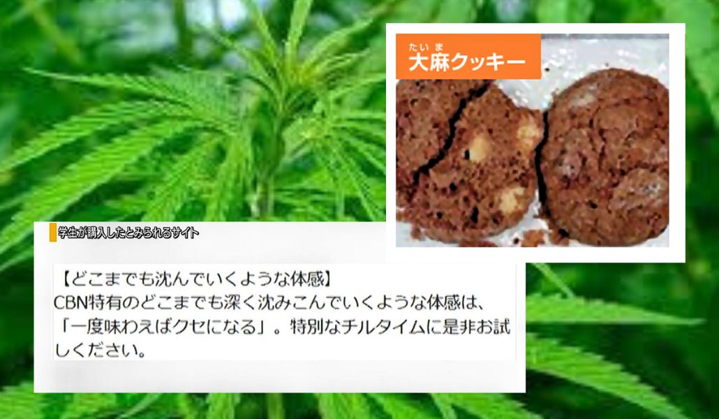 Un estudiante universitario de la ciudad de Kōfu, en la prefectura de Yamanashi, fue trasladado a un hospital tras arrojarse desde una ventana del segundo piso de un edificio, luego de consumir una galleta promocionada como producto legal que contiene componentes derivados del cannabis. El incidente ocurrió a inicios de mayo, pero fue dado a conocer por fuentes policiales el día 19 de junio.