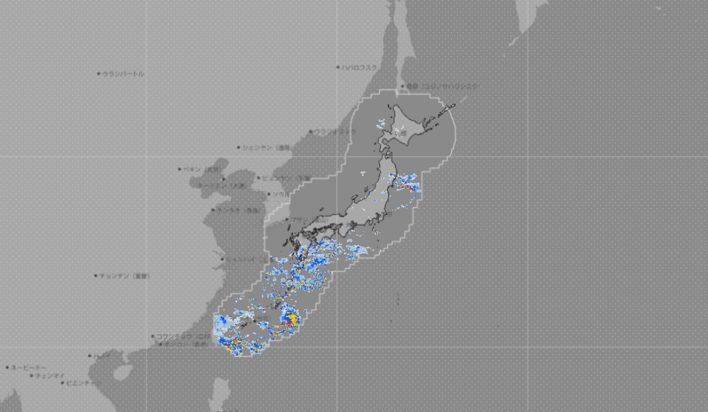 Para las 18:00 horas de hoy jueves, se pronostican lluvias intensas en las islas del suroeste, el oeste y el este de Japón, así como en el sur de Tohoku, debido al aire húmedo que fluye por el borde de un sistema de alta presión y el frente que desciende desde Tohoku. La costa del Pacífico en el oeste de Japón y Okinawa serán particularmente propensas a fuertes precipitaciones. Incluso la costa del Pacífico de Tohoku podría experimentar lluvias y tormentas desde la mañana.