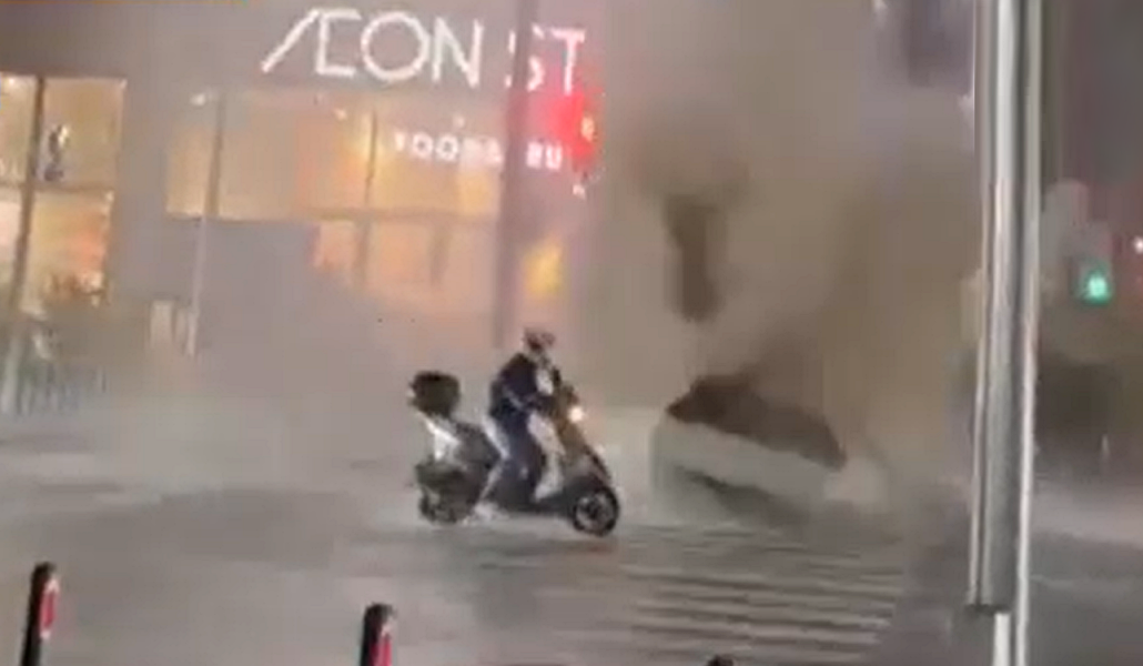 Uno de los eventos más graves ocurrió en Kohoku. Un motociclista pasaba cerca de una tapa de alcantarilla justo en el momento en que el agua subterránea, acumulada por las lluvias, emergió con fuerza. El estallido levantó parte del pavimento, y los pedazos de asfalto salieron disparados en varias direcciones.