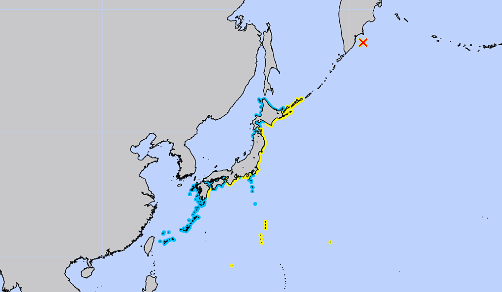 La Agencia Meteorológica de Japón emitió este martes un aviso de tsunami tras detectar anomalías en el comportamiento del mar, e instó a la población a alejarse de inmediato de playas, costas y zonas marítimas. Se esperan olas de 1 m en la costa Pacífico de Japón.