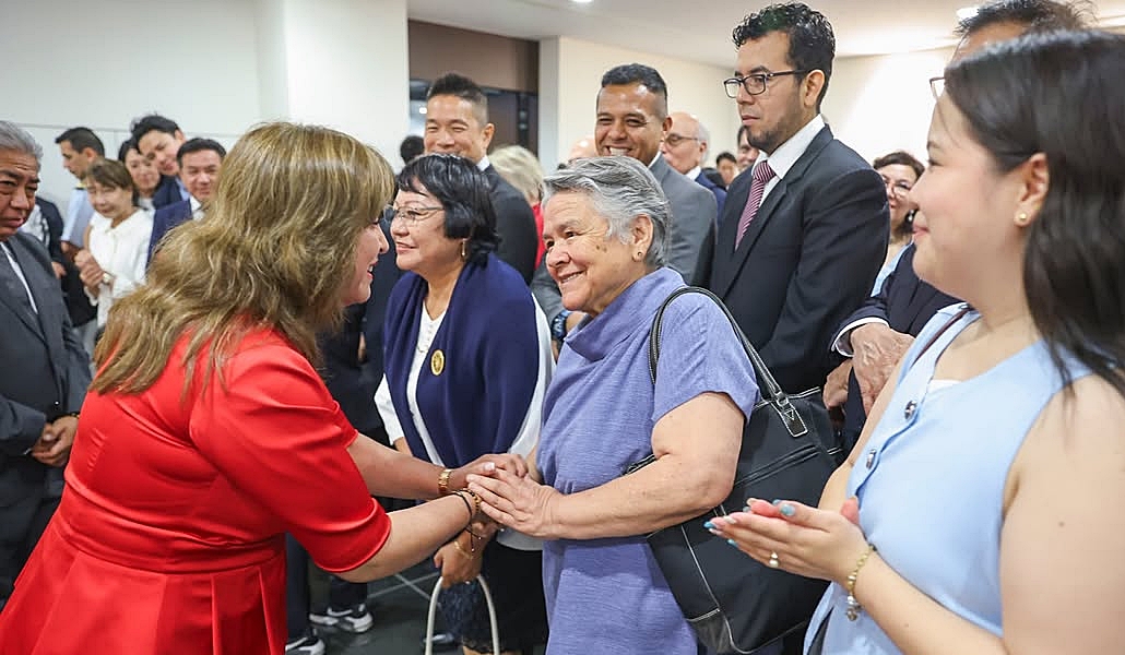La presidenta del Perú, Dina Boluarte, sostuvo esta mañana un encuentro con destacados miembros de la comunidad peruana en Japón, como parte de su visita oficial que se extenderá hasta el 10 de agosto. La reunión tuvo lugar en el Salón Machu Picchu de la Embajada del Perú en Tokio.