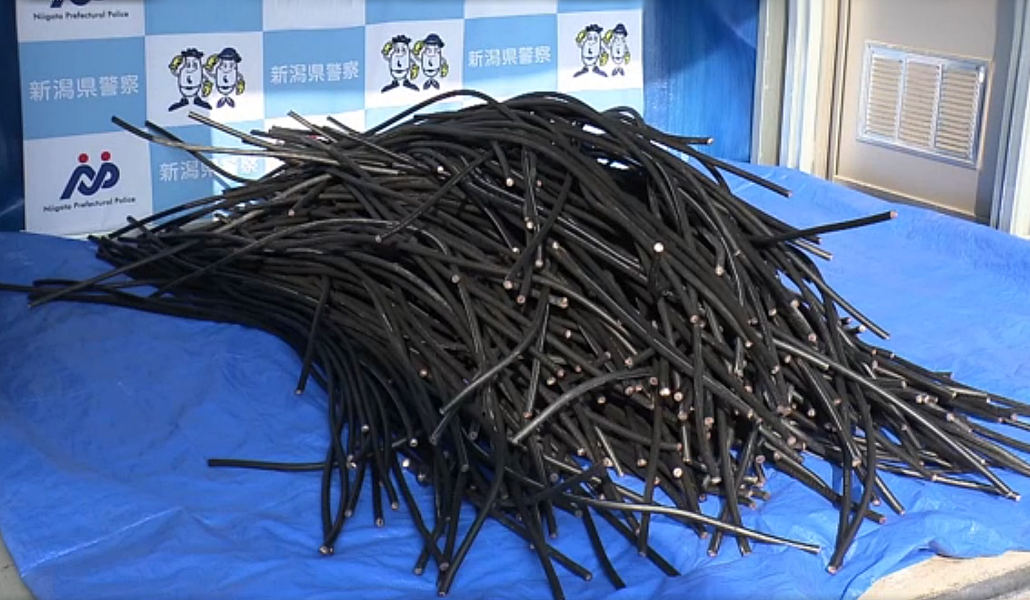 La policía de Niigata arrestó a cuatro hombres de nacionalidad camboyana acusados de robar dos toneladas de cables de cobre, valoradas en unos 3 millones de yenes (aproximadamente 20.300 dólares), de una planta de energía solar ubicada en la ciudad de Tainai. Los sospechosos ingresaron durante la noche y cortado los cables en tramos manejables para luego transportarlos en un vehículo.