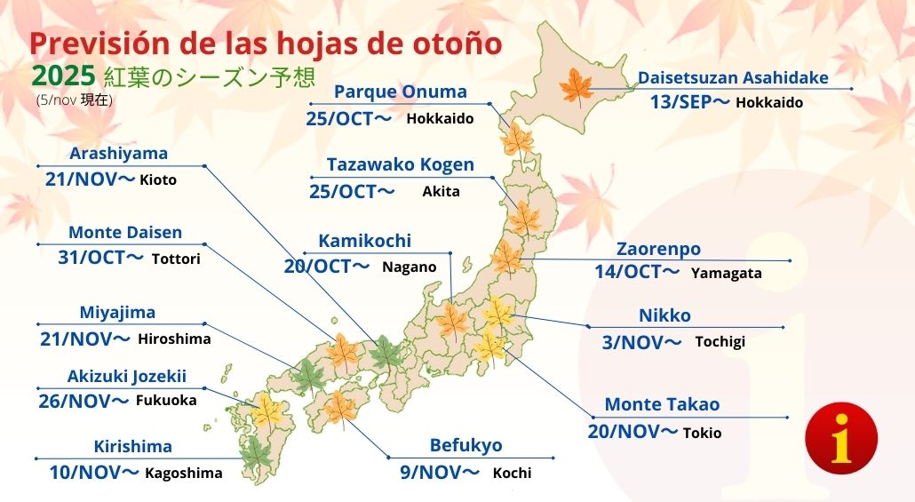 En zonas de montaña como Murododaira (Toyama) y el macizo de Daisetsuzan (Hokkaido), ya se observan claros indicios del cambio. En el resto del archipiélago, se espera que la alternancia entre días soleados y frentes de lluvia durante octubre facilite el descenso térmico necesario para que los colores se intensifiquen. (International Press)