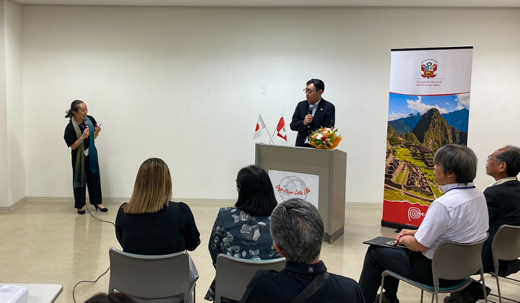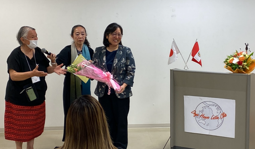 Doyo Hanno Latin Club, una organización peruana, latina ubicada en la prefectura de Saitama, celebró la “Semana de la Cultura Peruana» desde el 26 de septiembre al 1 de octubre en el Centro de Actividades para los Ciudadanos de Hanno. El pasado domingo 28 de septiembre, la cónsul general del Perú en Tokio, Anne Maeda, asistió al evento y ofreció una conferencia para conmemorar los 35 años de migración peruana a Japón. En su charla, presentó datos sobre la migración del Japón al Perú hace 125 años y la migración actual del Perú a Japón, subrayando la importancia de fortalecer las relaciones bilaterales de manera mutua.