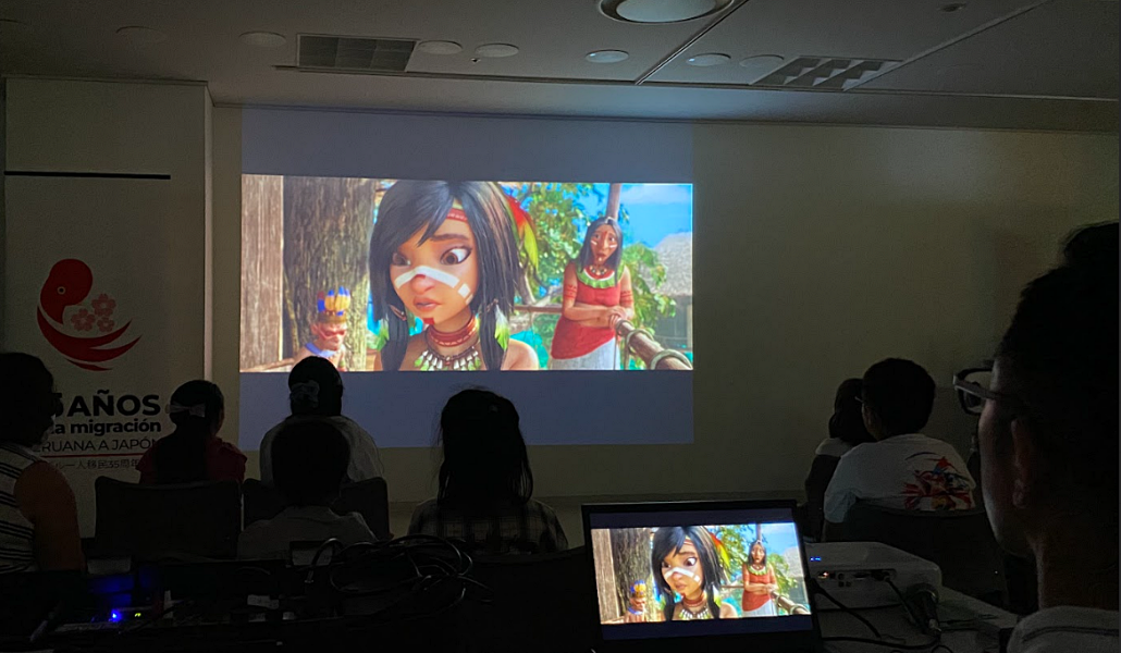 La Cónsul continuó su presentación explicando imágenes que destacaban la variada flora y fauna de Perú, así como la historia fotográfica de los 35 años de la migración peruana nikkei. Posteriormente, se proyectó la película animada peruana «Ainbo» en español con tuvo una breve actuación de títeres explicando el contenido de la película en japonés, realizada por estudiantes de la Universidad Meiji.