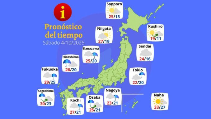Un sistema de baja presión acompañado de un frente se desplazará por el Mar de Japón hacia el este durante la jornada de este sábado 4 de octubre, provocando condiciones meteorológicas contrastantes en distintas regiones del país.