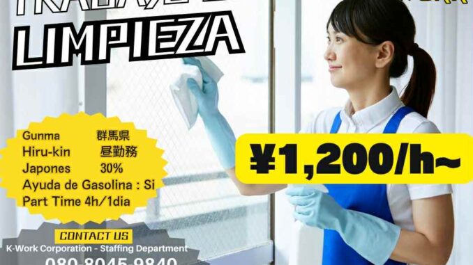 – Limpieza de oficinas, baños, sala de reuniones, shokudō (área de almuerzo y descanso) y otras áreas administrativas