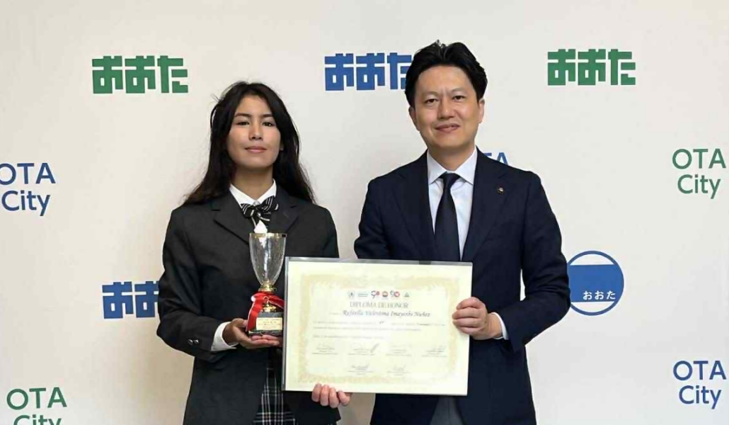 Rafaela Valentina Imayoshi Núñez (17), estudiante de nacionalidad peruana, fue recibida y felicitada personalmente por el alcalde de la ciudad de Ota, Masanobu Hozumi, tras obtener el primer lugar en el 3er Concurso Intercultural de Oratoria en Español. El alcalde Hozumi no quiso pasar por alto el logro de una joven que estudia en una escuela bajo su jurisdicción, honrando así el mérito de su vecina.