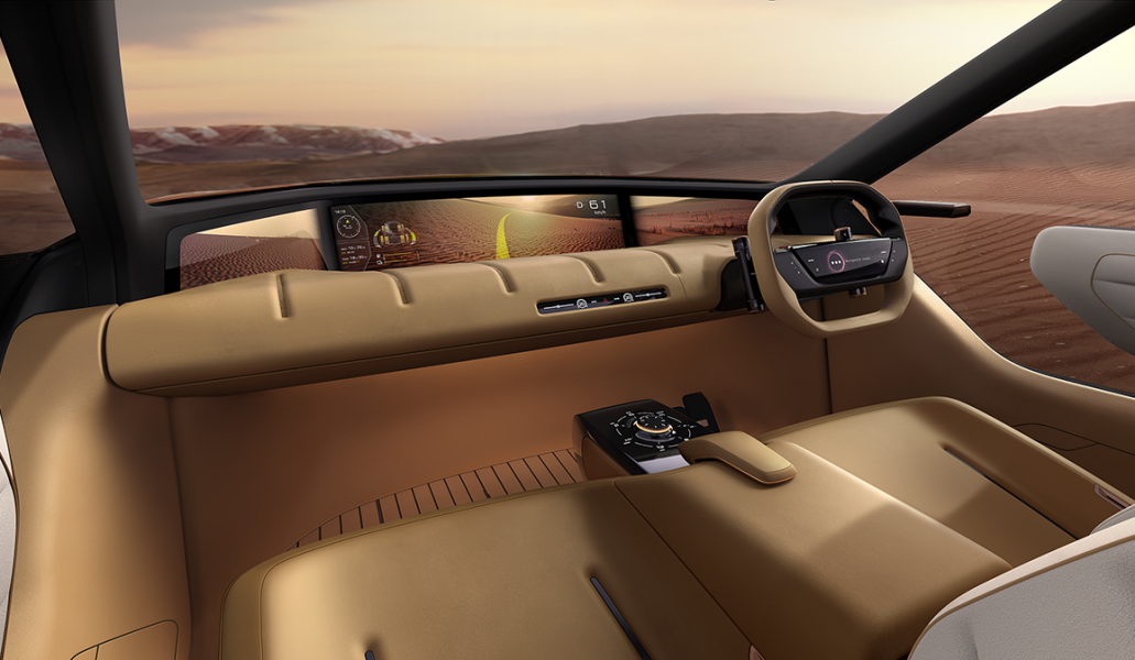 El interior ofrece un diseño envolvente continuo —desde el panel de instrumentos hasta los pisos—, con una atmósfera de sofisticación que busca transmitir seguridad y calma. El monitor de gran formato amplía la visibilidad hacia puntos ciegos y áreas poco perceptibles alrededor del automóvil.