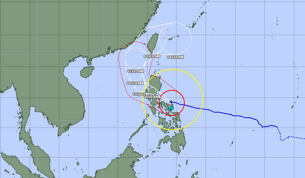 El tifón Nº 26, llamado «Daigara», un fenómeno de gran escala y extremadamente fuerte, avanza actualmente al oeste sobre las aguas al este de Filipinas a una velocidad de unos 30 kilómetros por hora. Sin embargo, su trayectoria prevista dibuja un círculo dramático con un giro brusco que, tras su impacto inicial, lo dirigiría hacia la región de Okinawa.