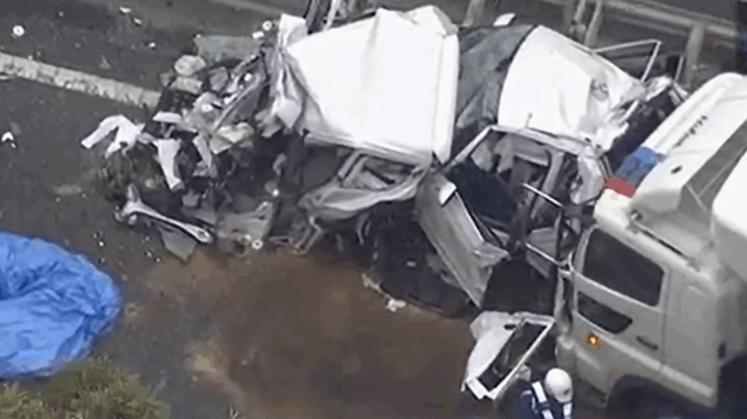 El suceso ocurrió aproximadamente a las 5:30 de la mañana hoy en el carril exterior de la Autopista Ken-O (Ken-O-Do), a un kilómetro de la salida de Iruma, en la prefectura de Saitama.