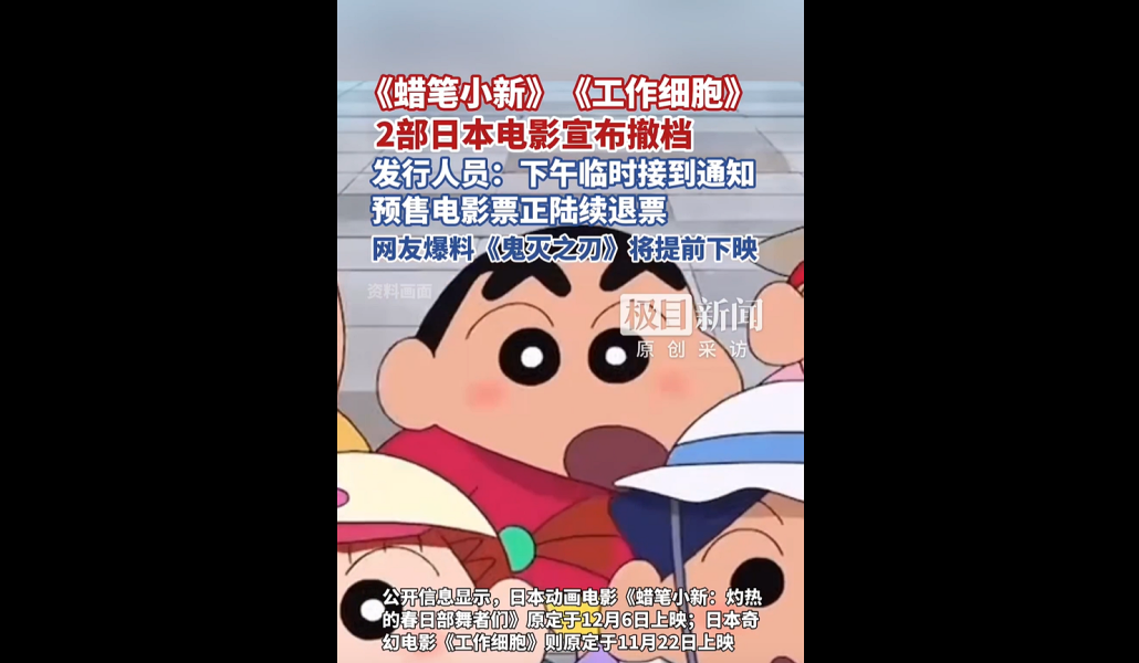La película «Crayon Shin-chan: Cho Karei! Shakunetsu no Kasukabe Dancers» estaba programada para su debut en China el 6 de diciembre. Junto con esta, la versión live-action del popular manga «Hataraku Saibo» (Érase una vez una célula), cuyo estreno estaba previsto para el 22 de noviembre, también fue suspendida.