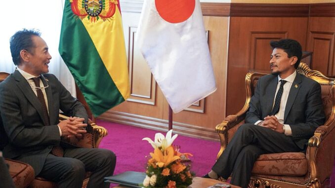 El nuevo ministro de Relaciones Exteriores, Fernando Aramayo Carrasco, sostuvo un encuentro con el embajador del Japón en Bolivia, Hiroshi Onomura, en La Paz. Ambas autoridades destacaron el «excelente momento» de la relación y la voluntad compartida de seguir profundizando los lazos de amistad y cooperación entre ambas naciones.