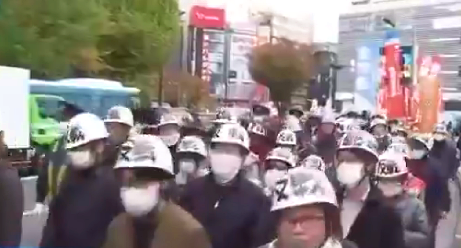 El video difundido mostraba imágenes de la manifestación celebrada el 29 de noviembre en Shinjuku, Tokio, y que reunió activistas del grupo Chukaku-ha, fácilmente identificables por sus distintivos cascos, que gritaban consignas como «¡Denunciamos la declaración de Takaichi sobre la emergencia de Taiwán!».