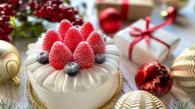 La pastelería Fujiya fue la primera en fabricar tortas navideñas en Japón. Su imagen más reconocida es Pecochan, la simpática muñeca que aún hoy recibe a los clientes en la entrada de sus establecimientos. El fundador de la empresa, Rinemon Fujii, pasó seis meses en Estados Unidos, donde conoció la cultura del café y el gusto por los dulces como símbolo de bienestar. A su regreso, en 1910, inauguró la pastelería pionera y lanzó ese mismo año la primera torta de Navidad en el archipiélago: un sencillo bizcocho cubierto de azúcar y decorado con pequeñas bolitas plateadas.