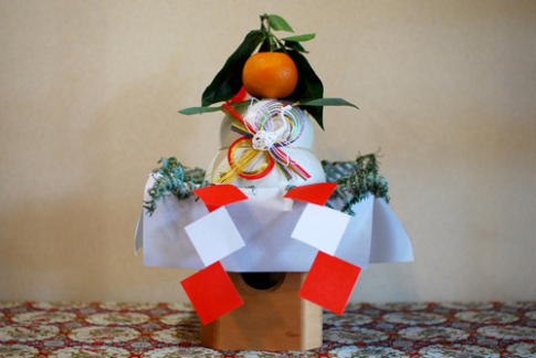 Kagami mochi: Son dos tortas de arroz (arroz al vapor machacado que en japonés se llama mochi), una más grande que la otra, la más grande es la base, encima va la menor y sobre ella se coloca una mandarina. Tradicionalmente se ponía un daidai, un tipo de mandarina. Algunos frutos del daidai permanecen en el árbol durante unos tres años sin pudrirse, por lo tanto, puede ocurrir que un árbol tenga un fruto de hace dos años, otro del año pasado y un tercero del año presente. Para los japoneses esto significa que tres generaciones viven juntas en una familia cuya prosperidad, además, continúa.