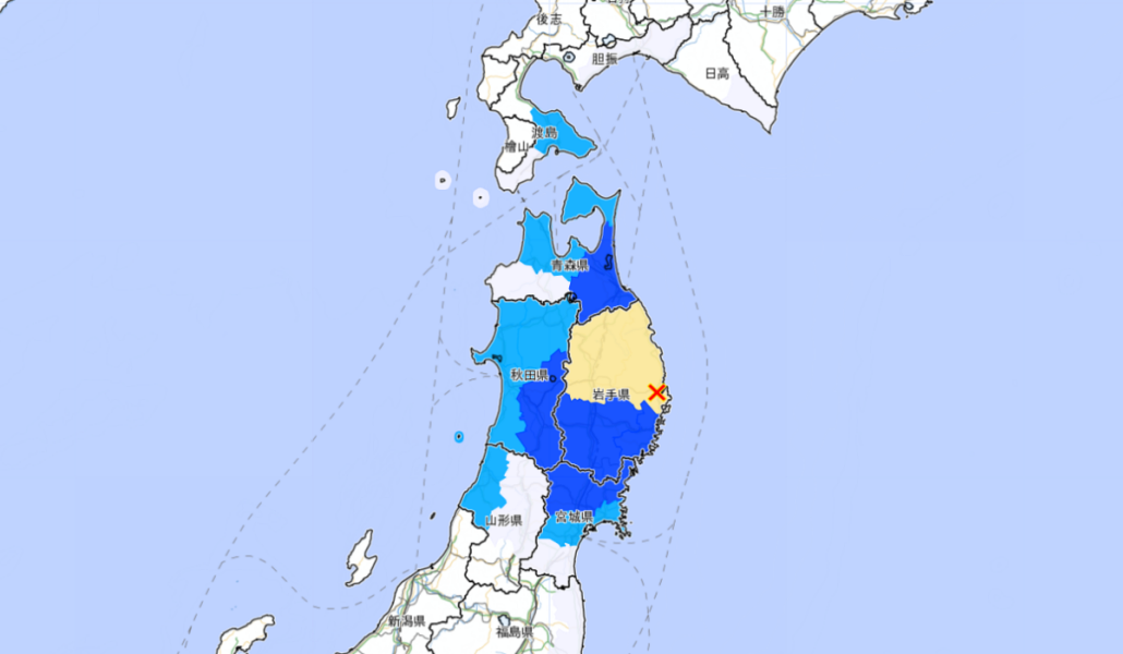 La intensidad máxima registrada fue de 4 en la escala japonesa Shindo, afectando principalmente a localidades como Morioka-shi, Miyako-shi y Kuji-shi. El sismo también se sintió con una intensidad de 3 en amplias zonas de las prefecturas vecinas de Aomori, Akita y Miyagi, incluyendo núcleos urbanos como Hachinohe-shi y Kesennuma-shi. A pesar de la ubicación costera del epicentro, la Agencia Meteorológica de Japón confirmó con rapidez que no existe riesgo de tsunami derivado de este evento.