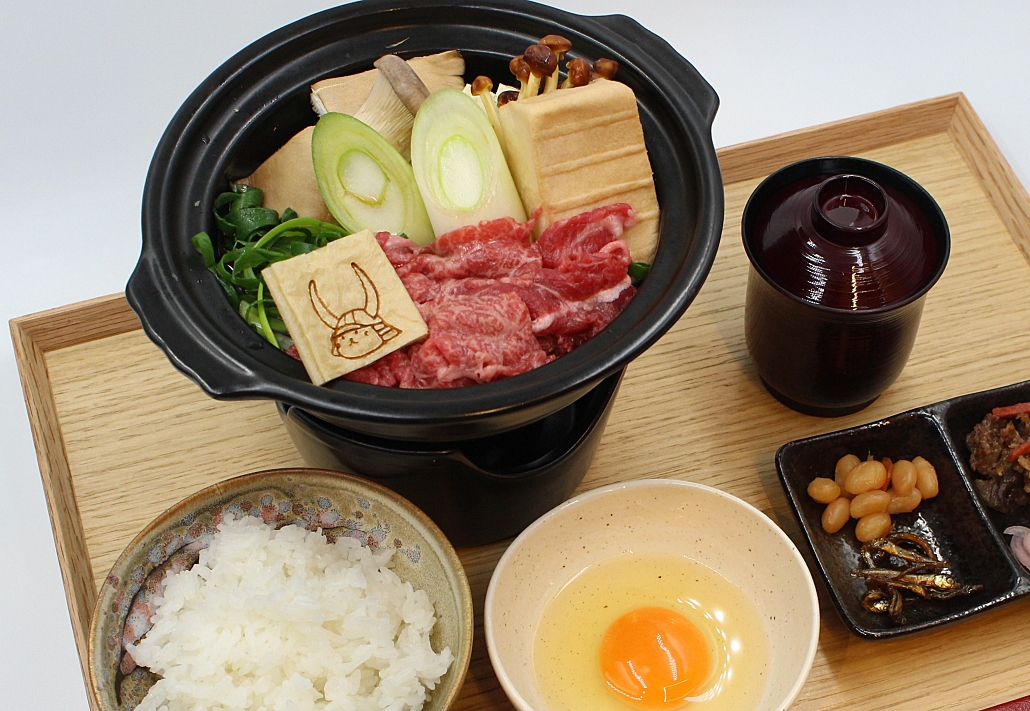El plato: Un menú especial de Sukiyaki de carne Omi (2.900 yenes) preparado con ingredientes locales como puerros Shinobu y Yuba de Hiei. El plato incluye una adorable decoración comestible de Hikonyan. Para los más golosos, habrá un set de postres con Dorayaki disponible solo durante el puente del 21 al 23 de febrero.