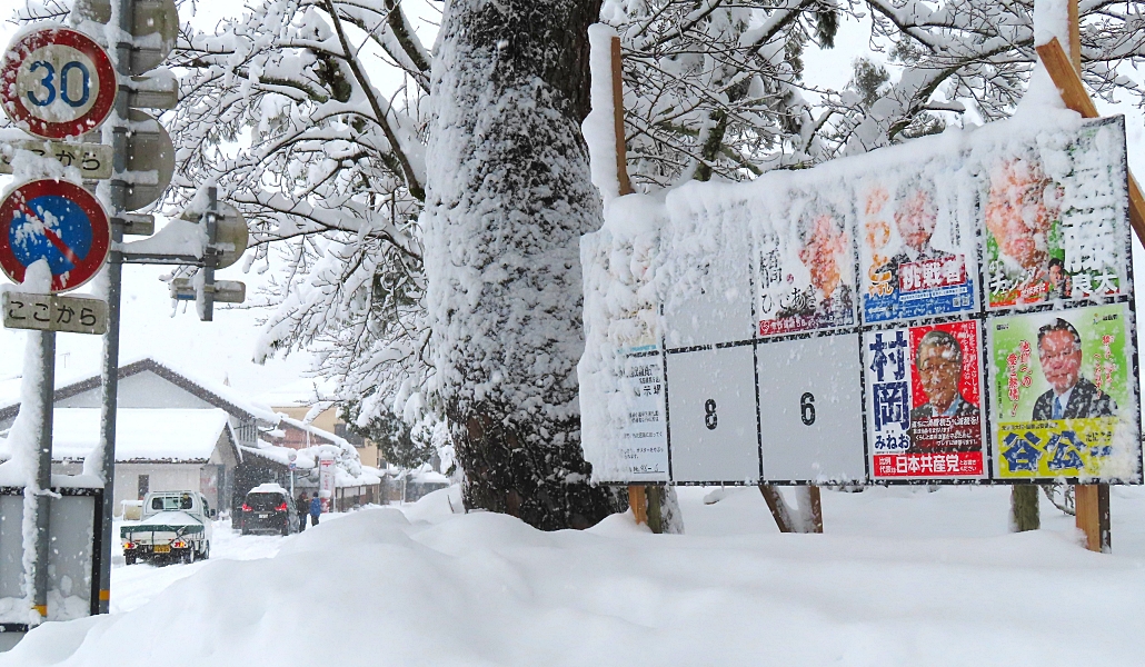 El clima adverso ha golpeado la jornada electoral de la Cámara de Representantes. En Daisen-cho, distrito de Nakayama, la votación comenzó con dos horas de retraso debido a la imposibilidad de limpiar la nieve acumulada.