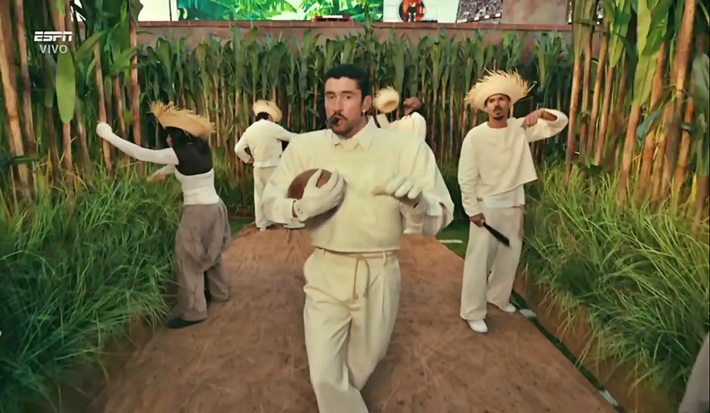 El show fue una reivindicación cultural sin precedentes. Las pantallas gigantes mostraron «Súper Tazón» en español, mientras el «Conejo Malo» encendía a la multitud con éxitos globales como «Tití me preguntó» y «Yo perreo sola».