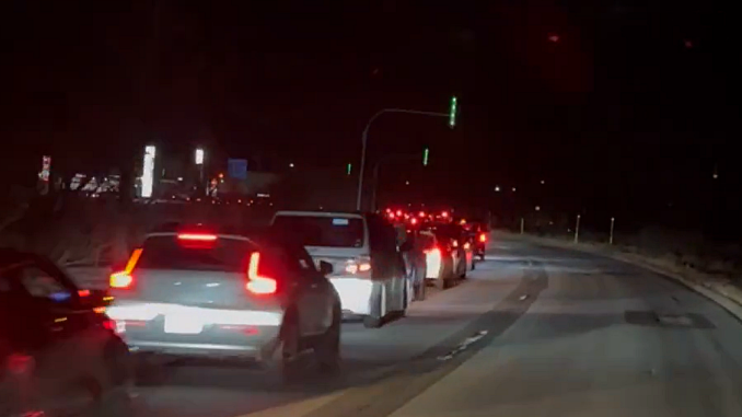 Conductores formaron largas filas la noche de hoy, 11 de marzo, en estaciones de servicio de Fukuoka ante el inminente aumento del precio de la gasolina previsto a partir de este jueves.