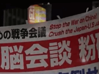 Manifestantes en Tokio dicen que Takaichi-Trump preparan la guerra con China