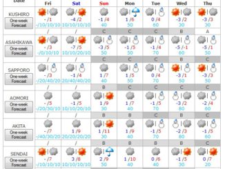 Jueves 17 de marzo – Pronóstico del tiempo para Japón